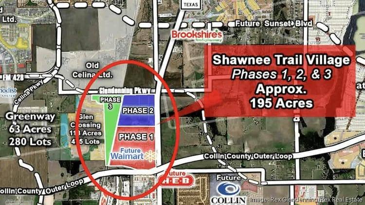 What is Shawnee Trail in Celina, Texas? Shawnee Trail is a 150-acre Celina mixed-use development at the corner of Preston Road and the Collin County Outer Loop. Developed by G-Man Development and Trademark Property Company, the project includes Walmart as anchor tenant, with restaurants, entertainment, office space, parks, and multifamily residential planned for subsequent phases.